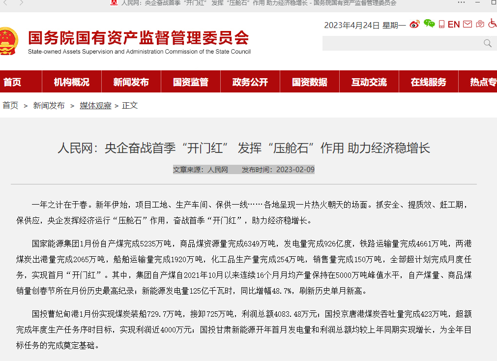 人(rén)民(mín)網:央企奮戰首季“開(kāi)門(mé→§n)紅(hóng)” 發揮“壓艙石”作(zuòπ')用(yòng) 助力經濟穩增長(cháng)